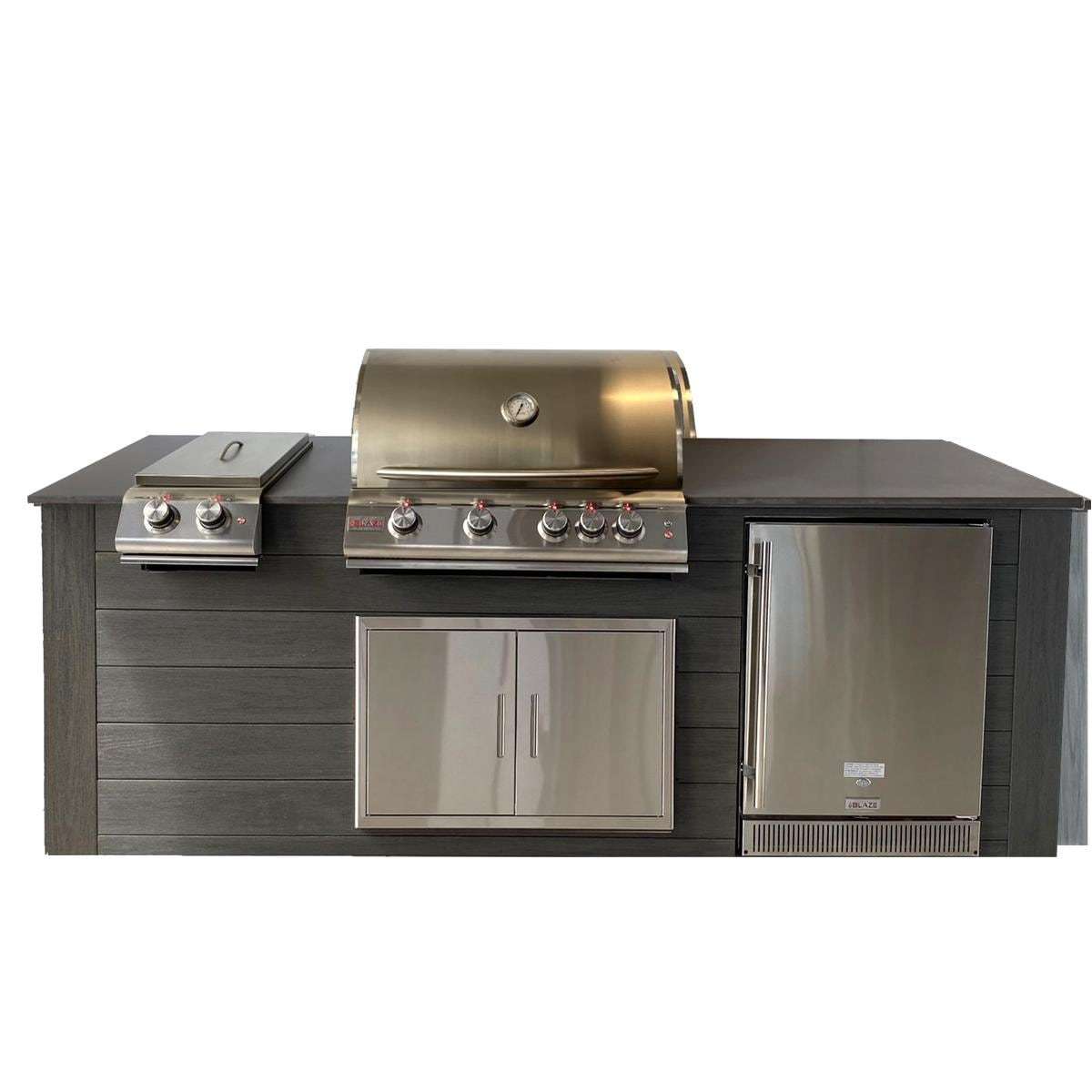 Pro-Fit 8-Foot Outdoor Kitchen Island W/ Blaze Premium LTE 32-Inch Natural Gas Grill, Double Side Burner & Refrigerator - Onyx / Grigio Piombo Satin is backordered and will ship as soon as it is back in stock.